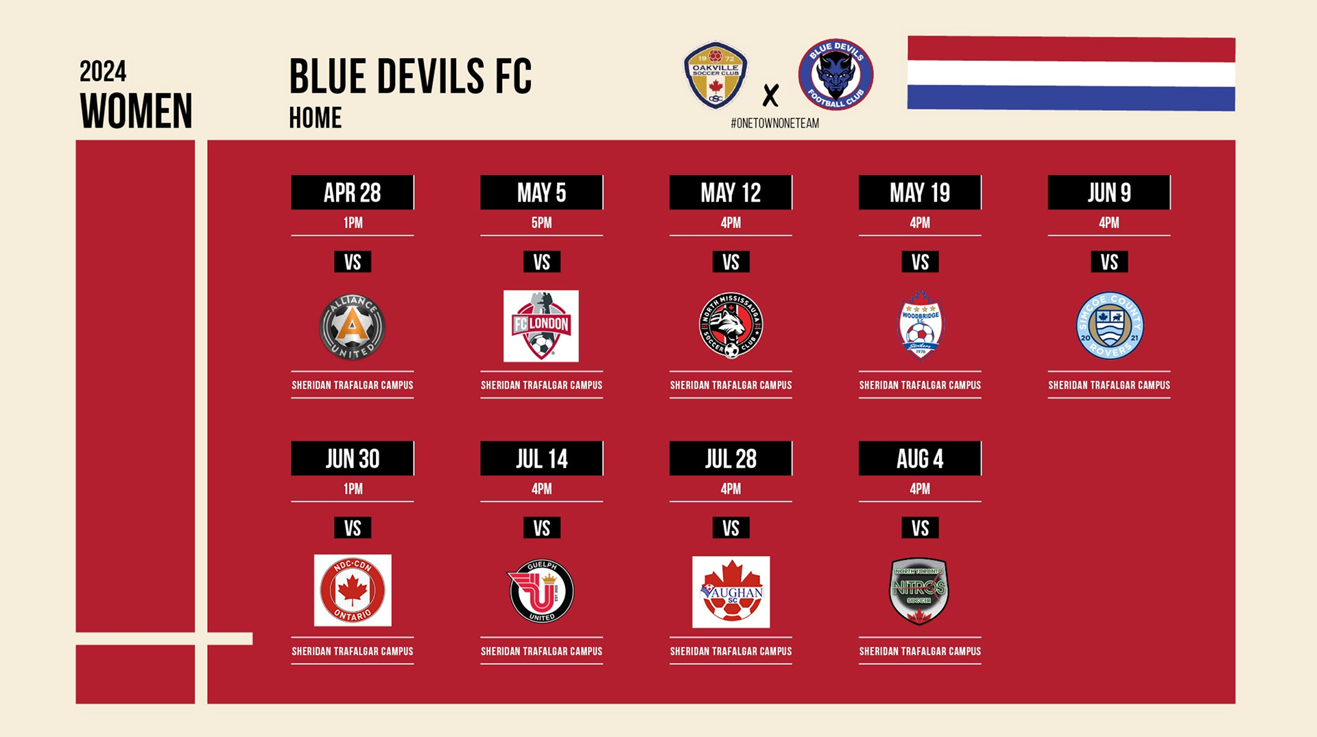 Blue Devils FC is one of Canada’s leading soccer development academies, building a complete player pathway from early childhood through League1 Ontario and beyond. The club’s mission is to empower young athletes to pursue their dreams — from grassroots development to collegiate, professional, and national team opportunities.
