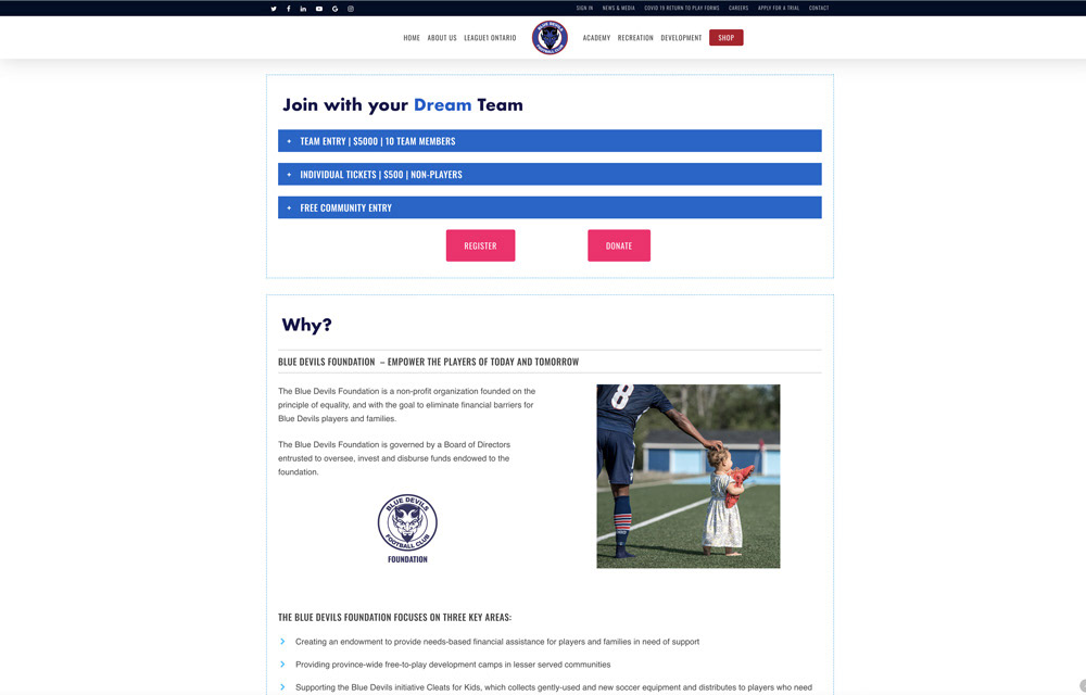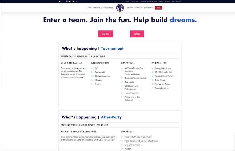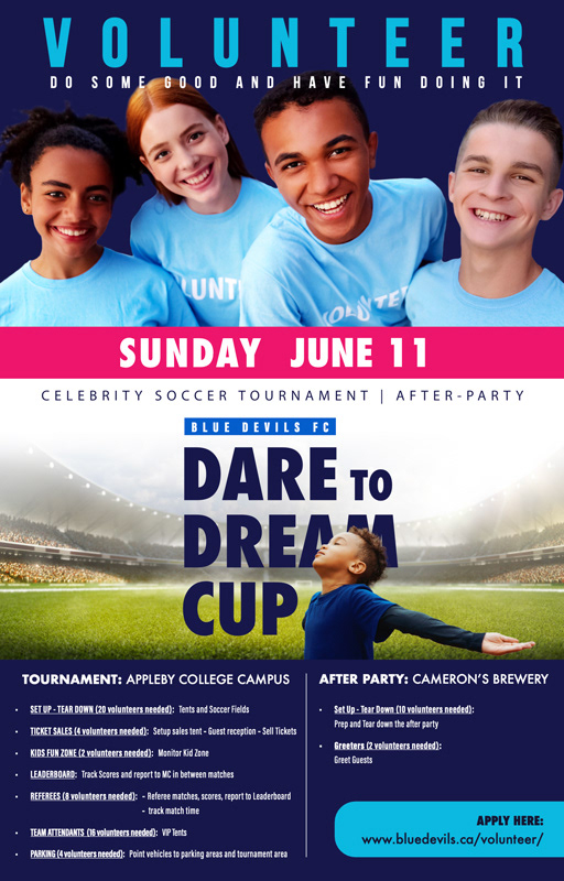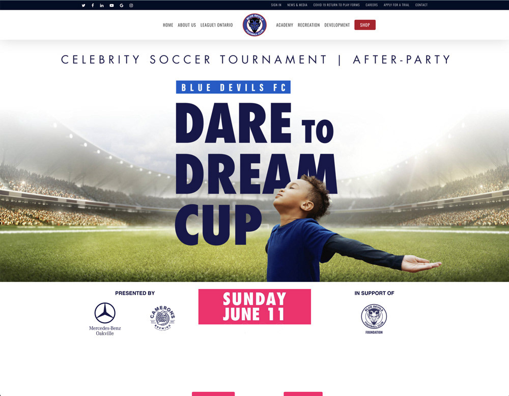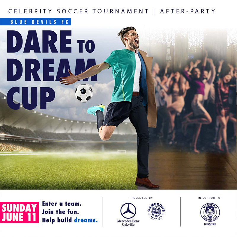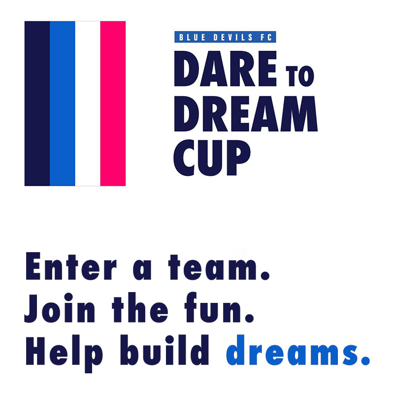 The Dare to Dream Cup was a large-scale fundraising tournament created to support the Blue Devils FC Foundation’s mission to make soccer more accessible to young athletes. The initiative required a unified campaign identity that could generate community engagement, increase foundation visibility, and support a $100,000 fundraising goal.